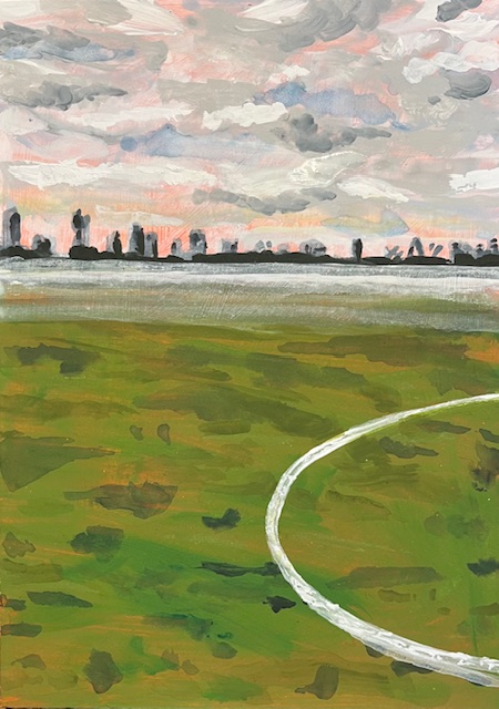 In 2020, Becky returned to painting primarily focussing on landscapes depicting bodies of water juxtaposed to manmade surroundings. She works primarily in Acrylics and has exhibited solo at London Fields Lido, Park rd Lido and Parliament Hill Lido. She is part of South East Arts and has had work exhibited at Linden Hall Gallery in Deal, Finch Café Hackney, and BCMA Gallery Berlin.