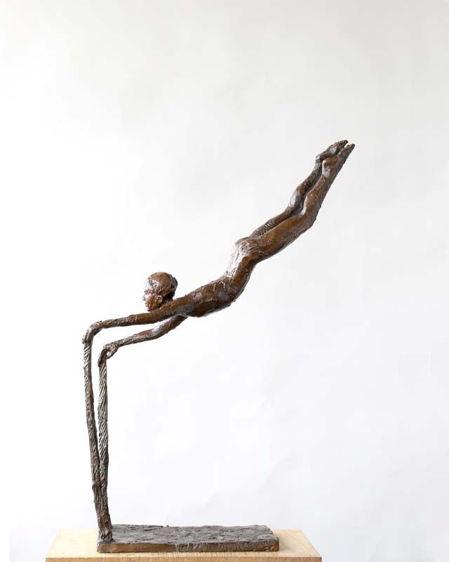 I couldn’t work without drawing, it’s all about trying to see, drawing enables that. But mostly I make figurative sculpture from clay, which like charcoal is quick to make marks with, once finished it is cast into bronze or bronze resin, those fluid marks of the making are then fixed forever.