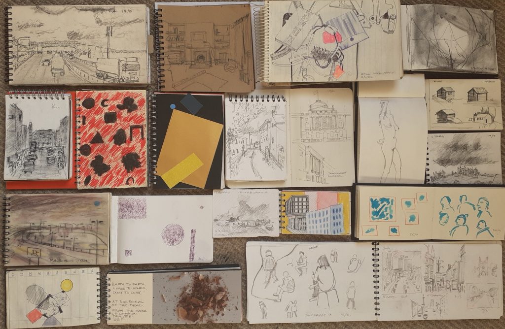 I like to draw or sketch what I see in front of me which might be chairs, electrical components, St Paul’s Cathedral, trees, the M4, people, council estates or studies of Thomas Gainsborough. Anything can be made into a nice drawing or sketch. Sometimes I draw the first thing that comes into my head, which might represent something (or not).