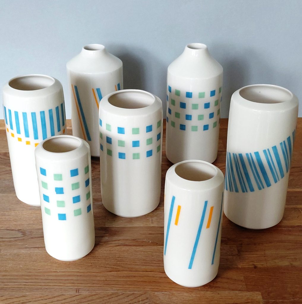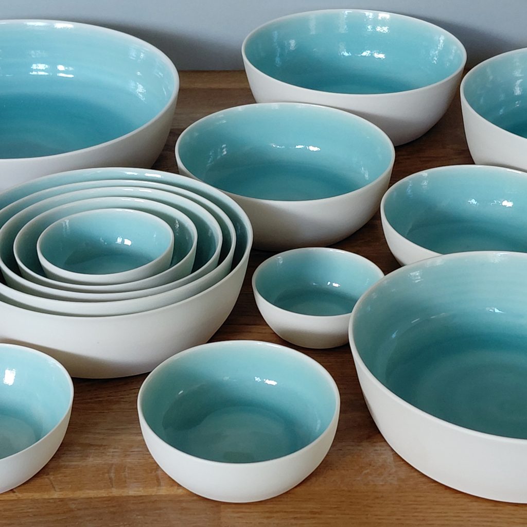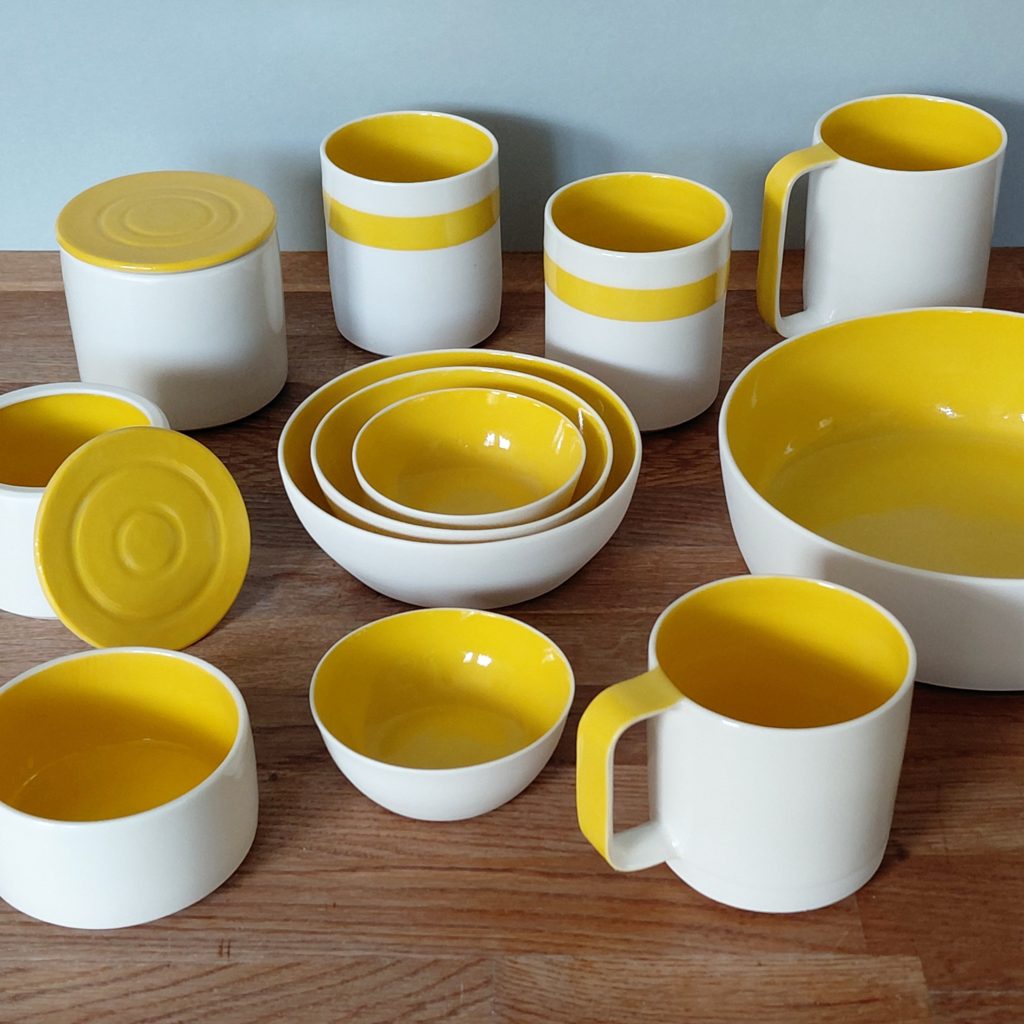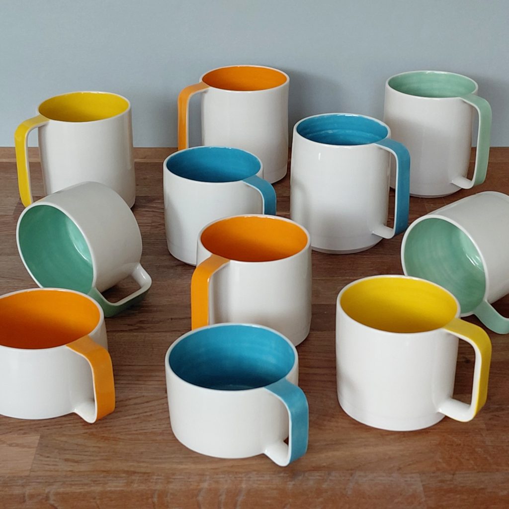 I make wheelthrown porcelain ceramics with an aesthetic influenced by mid-twentieth century modernist design. My work is characterised by simple modern forms with minimal geometrical decorative detail. I’m aiming for a pared-down functional elegance, with space for the quirks and idiosyncrasies of the handmade. Above all, I want my pieces to be a joy to use in everyday domestic routines.